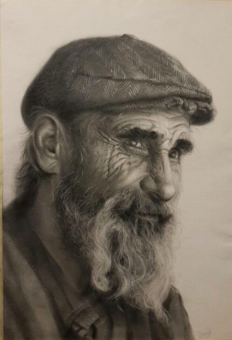 drawing with charcoal head